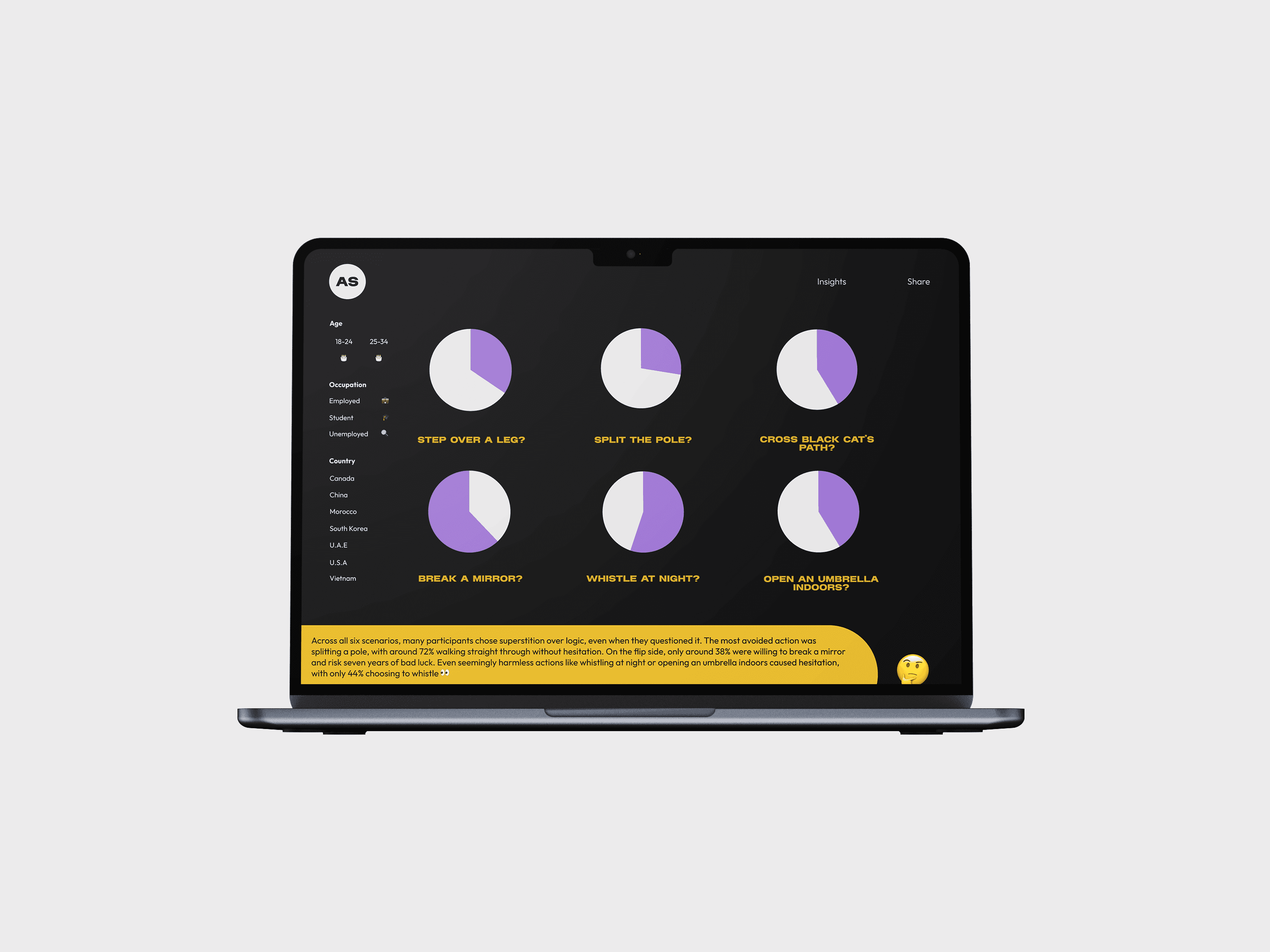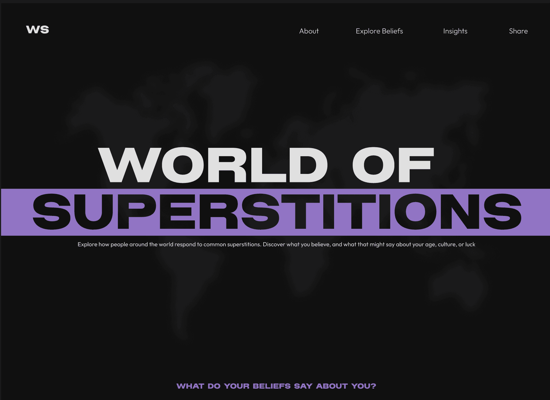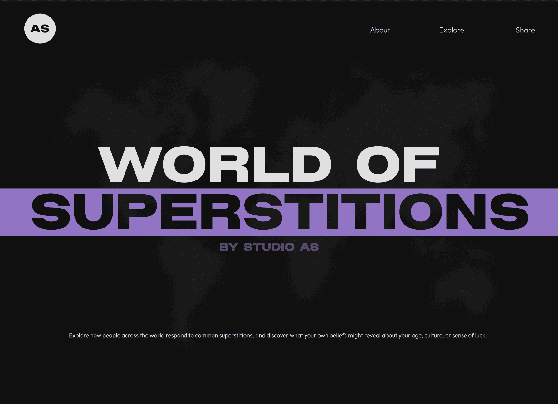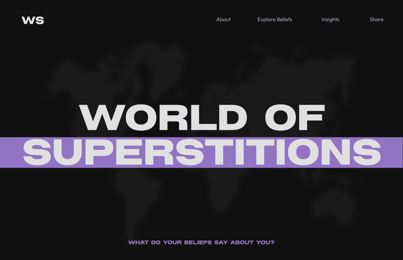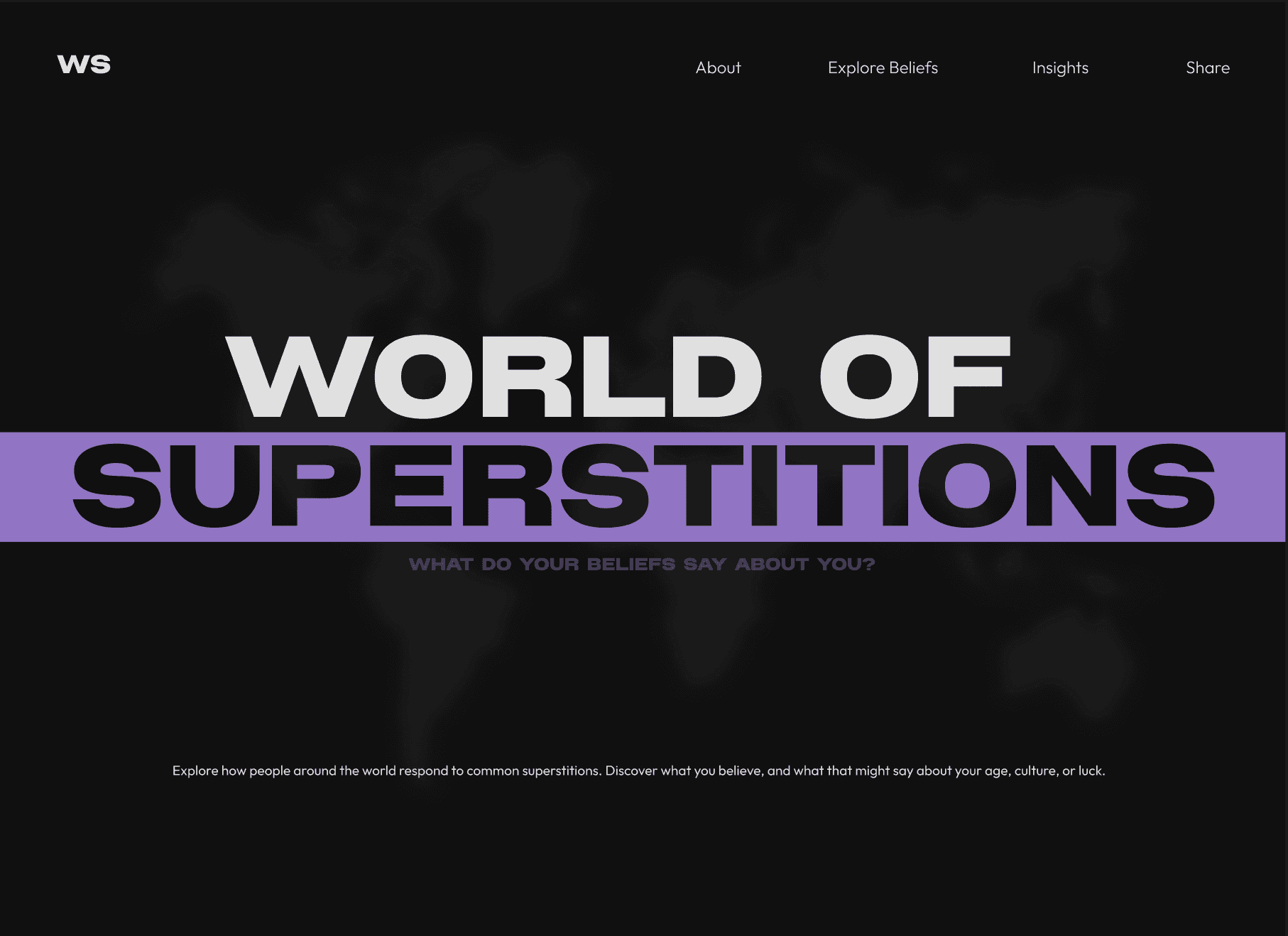 World of Superstitions is an interactive editorial website that explores how cultural beliefs and superstitions influence everyday decision-making. Through data visualizations and narrative storytelling, users can uncover behavioural patterns and reflect on how these beliefs may shape their choices.